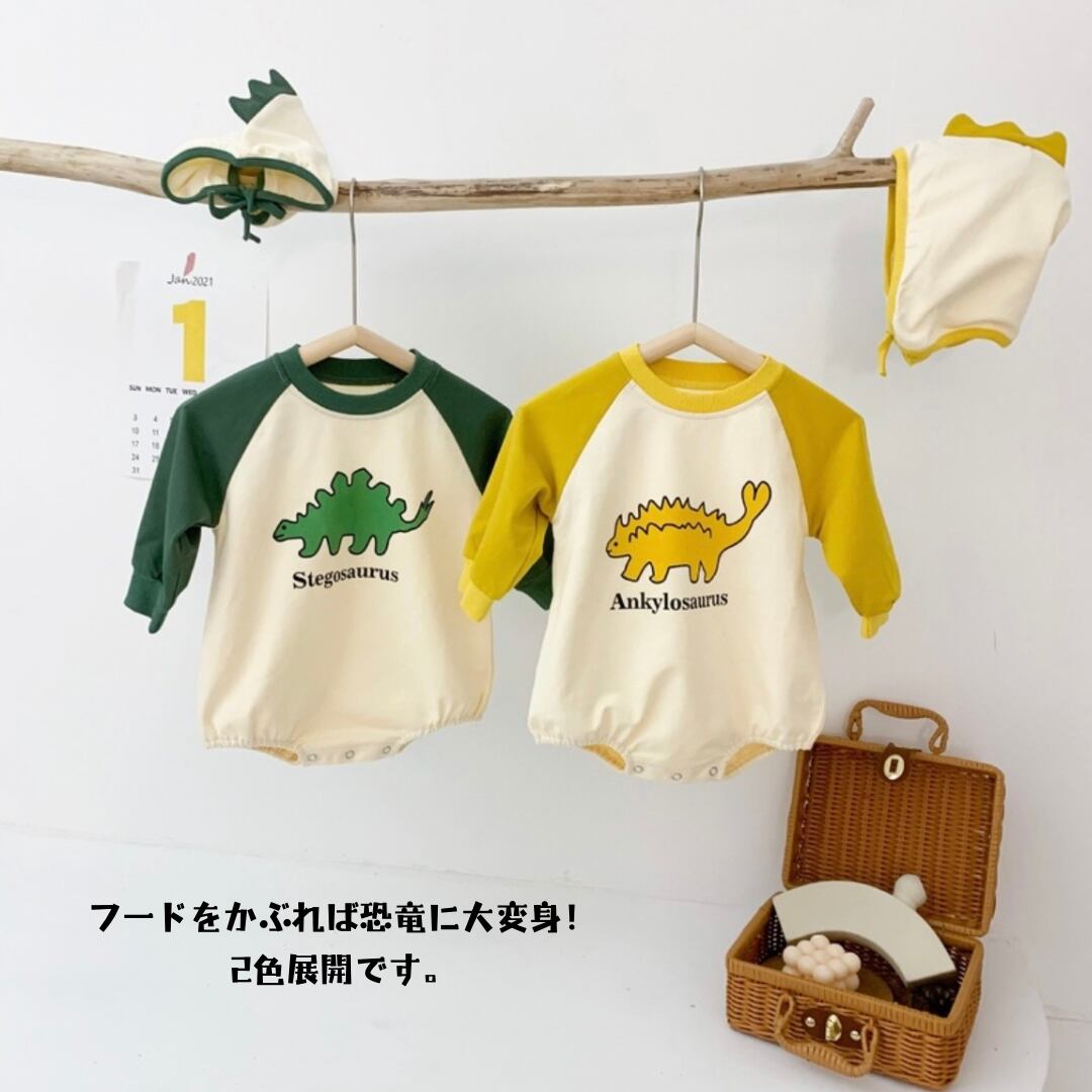 【即納】恐竜 ロンパース 男の子 ベビー (フード付き)